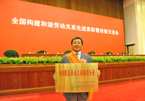 “全國(guó)構(gòu)建和諧勞動(dòng)關(guān)系先進(jìn)表彰暨經(jīng)驗(yàn)交流會(huì)”于2011年8月15日至16日在北京隆重舉行。中共中央政治局常委、中央書記處書記、國(guó)家副主席習(xí)近平出席會(huì)議并講話。這次會(huì)議,是由全國(guó)總工會(huì)、人力資源和社會(huì)保障部、全國(guó)工商聯(lián)、中國(guó)企業(yè)聯(lián)合會(huì)、中央宣傳部聯(lián)合召開的。會(huì)議表彰了全國(guó)模范勞動(dòng)關(guān)系和諧企業(yè)和工業(yè)園區(qū),我公司獲得“全國(guó)模范勞動(dòng)關(guān)系和諧企業(yè)”榮譽(yù)。